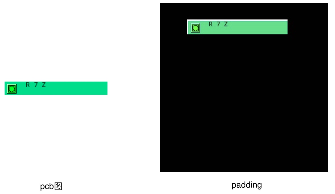考虑到PCB图片比较小,宽度只有25左右、高度只有140-170左右,我们在原图的基础上进行padding,再进行检测评估,padding前后效果对比如 图4 所示: